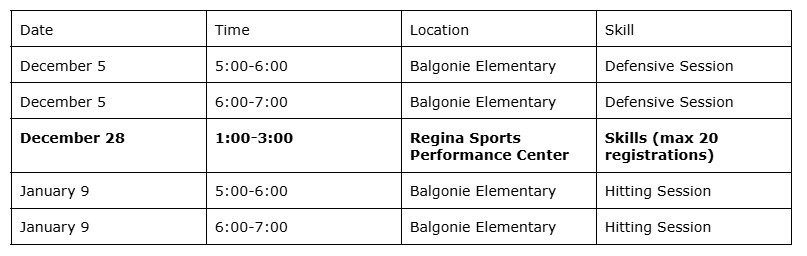Cost : $5/athlete/session, Please note the 2hr session at RSPC is $25